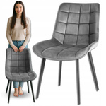 Grafitowe krzesło tapicerowane welurowe pikowane metalowe nogi do jadalni salonu Loft