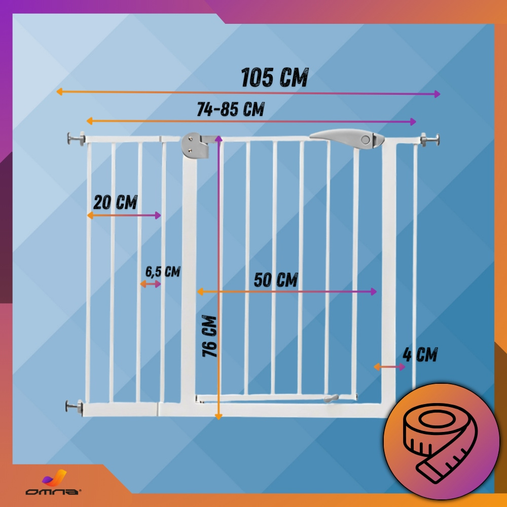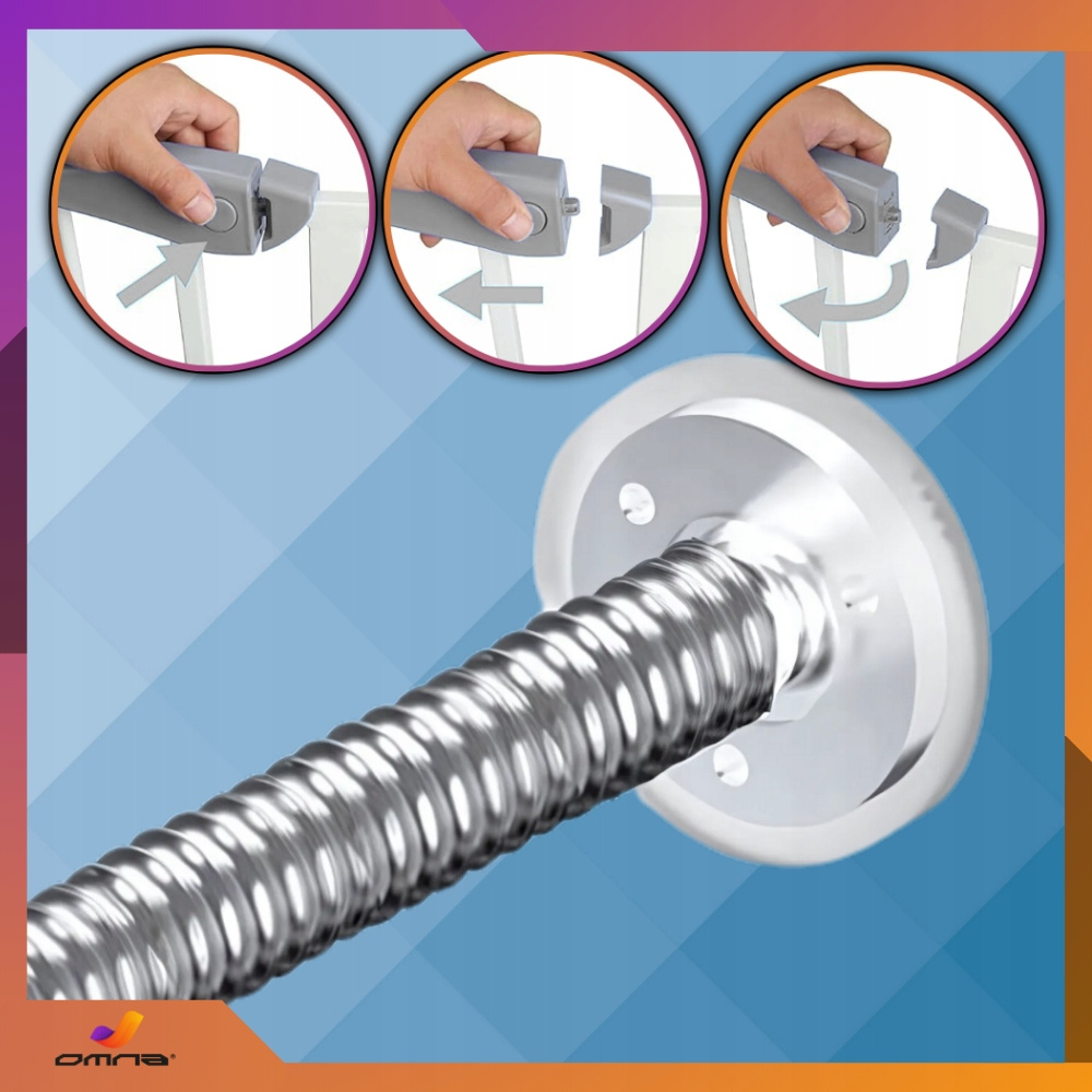 Regulowana szerokość pozwala na zamontowanie jej w drzwiach i przejściach od 74 do 105 cm